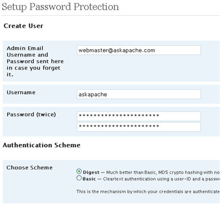 AskApache Password Protect cho phép bạn cài đặt mật khẩu bảo vệ blog của bạn bằng cách sử dụng cả chế độ chứng thực HTTP Basic Authentication hoặc HTTP Digest Authentication (bảo mật hơn).